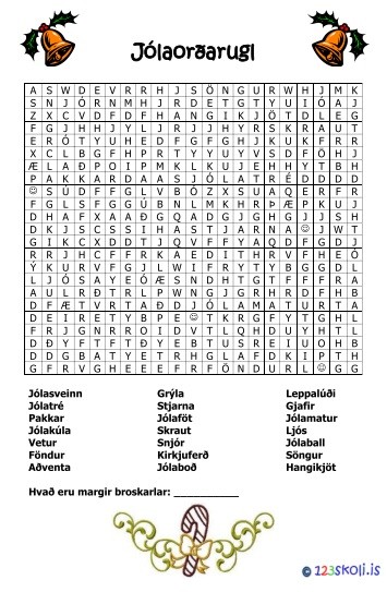 Fjölbreytt orð er tengjast jólum, jólamat og jólahátíðinni.