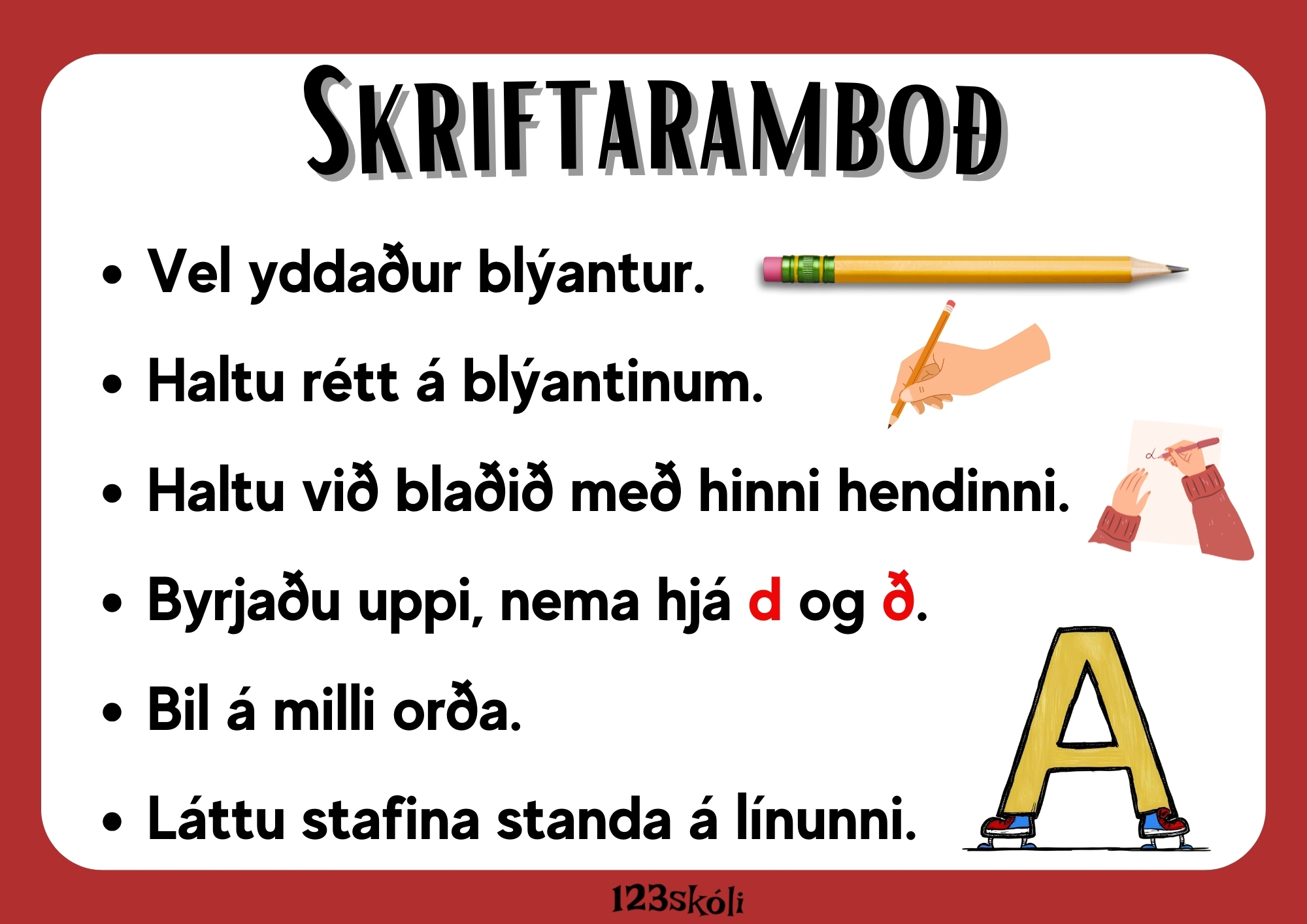 A4 spjald - hentar vel á vegg í kennslustofu.